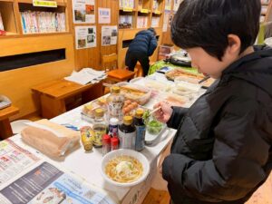 この日のこども食堂のメニューは「花背製麺」。丸亀製麺ばりにメニューを用意しました。