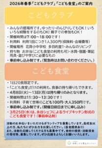 Home新着情報お知らせ春季こどもクラブ・こども食堂のご案内